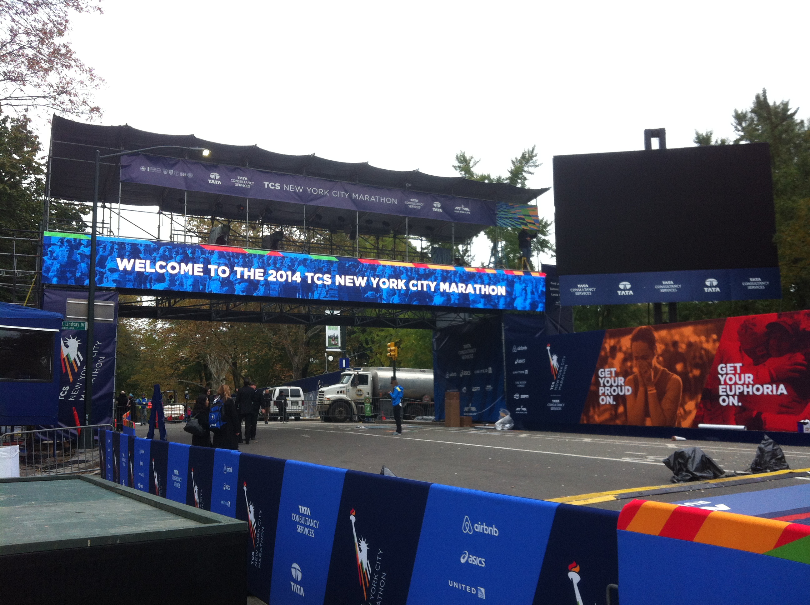 6:00h Suena el despertador, me levanto y mientras empiezo a vestirme para ‘la gala’ enciendo la tele. Una reportera de FOX la va a correr y ya está en la salida, en Fort Wadsworth, Stanten Island. La tía está envuelta en ropa y casi no se la oye de las ráfagas de viento. No paran de decir que hoy será un día de extraordinario viento. Vale, bieeen, yo que venía tan contenta por correr con frío, no contaba con esa posibilidad. Tras la semana de Lanzarote, tenía muy claro que viento es tan enemigo como Lorenzo. Me desanimé un poco pero pensé, bueno, ya está, da igual, estoy aquí y haré lo que pueda. Qué más da, vas a correr el Maratón de Nueva York. Concéntrate en eso y Adelante Bonaparte, que vamos tarde.