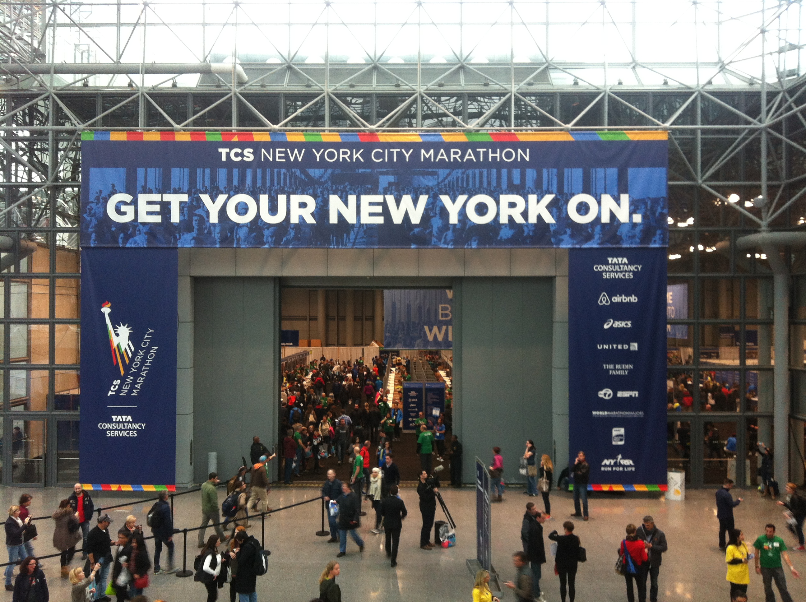 Relleno la bolsa oficial [si, la bolsa oficial porque no puedes entrar en el ‘fuerte’ con cualquier mochila o bolsa, tiene que ser una transparente que te dan en la feria del corredor] con plátanos e isotónica y tras pasar por el desayuno mierder del hotel donde pegué un sorbo a un café aguachurri y a un bagel, me fuí para el metro prácticamente en ayunas. Con el tiempo que tenía hasta la salida y sabedora de la cantidad de avituallamiento que hay en la salida, no era necesario forzar la ingesta de nada a esas horas en las que mi estómago no estaba cerrado, lo siguiente.