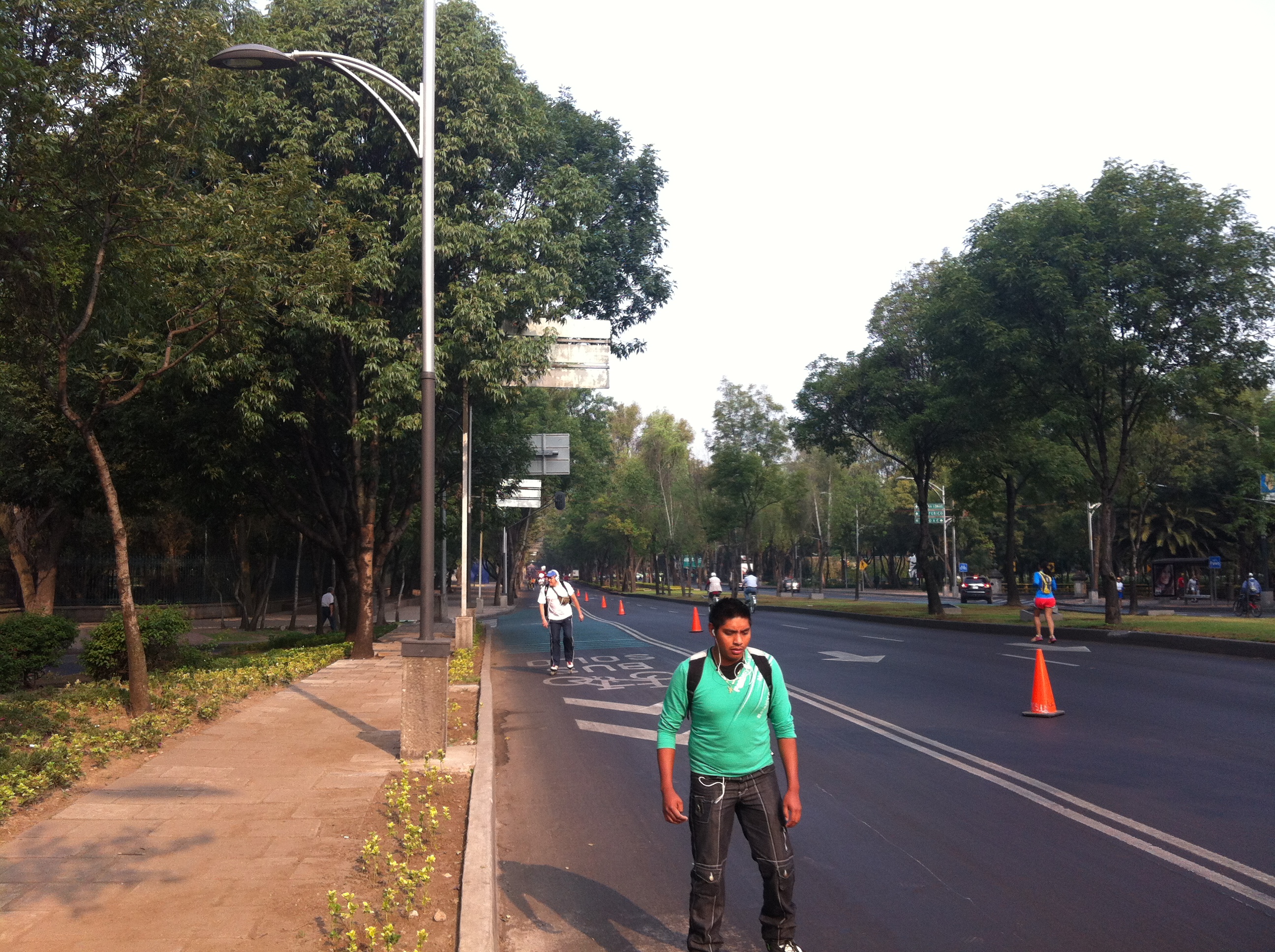 Tras la aventura exploradora del bosque de Chapultepec, me crecí y me dispuse al día siguiente a acometer otro hito ‘investigador’ en la Ciudad de México. Me habían comentado los compañeros del trabajo que los domingos, se cerraba al tráfico un tramo del Paseo de la Reforma, para que os hagáis una idea, es la principal vía de la ciudad, esa que cruza siempre de punta a punta en muchas ciudades. 12 kilómetros de asfalto a 2.300m, no está mal.