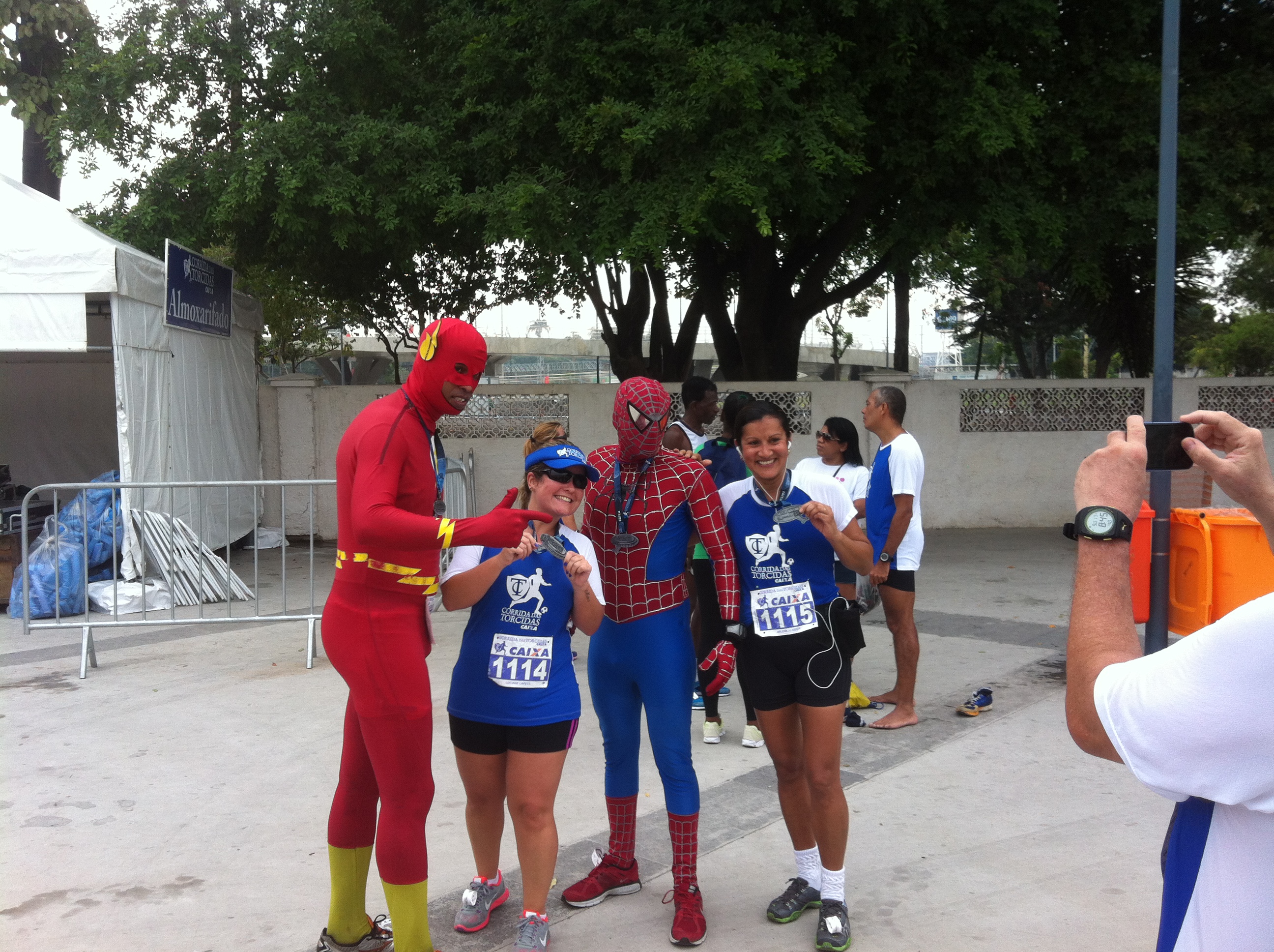 Y medalla. Otra característica común con México, medallas a gogó desde un 5k al medio maratón, algo que no acabo de ver claro, desde el punto de vista de aquí, pero si entiendo desde el punto de vista de allí. Hay de todo, pero en general la gente no sale a competir ni a batir marcas sino a superarse y divertirse. No se cómo explicarlo, pero se respira otro ambiente. El mensaje repetido constantemente por los speakers, tanto en México como en Brasil, es ‘todos sois campeones’. Pequeñas grandes victorias individuales.
