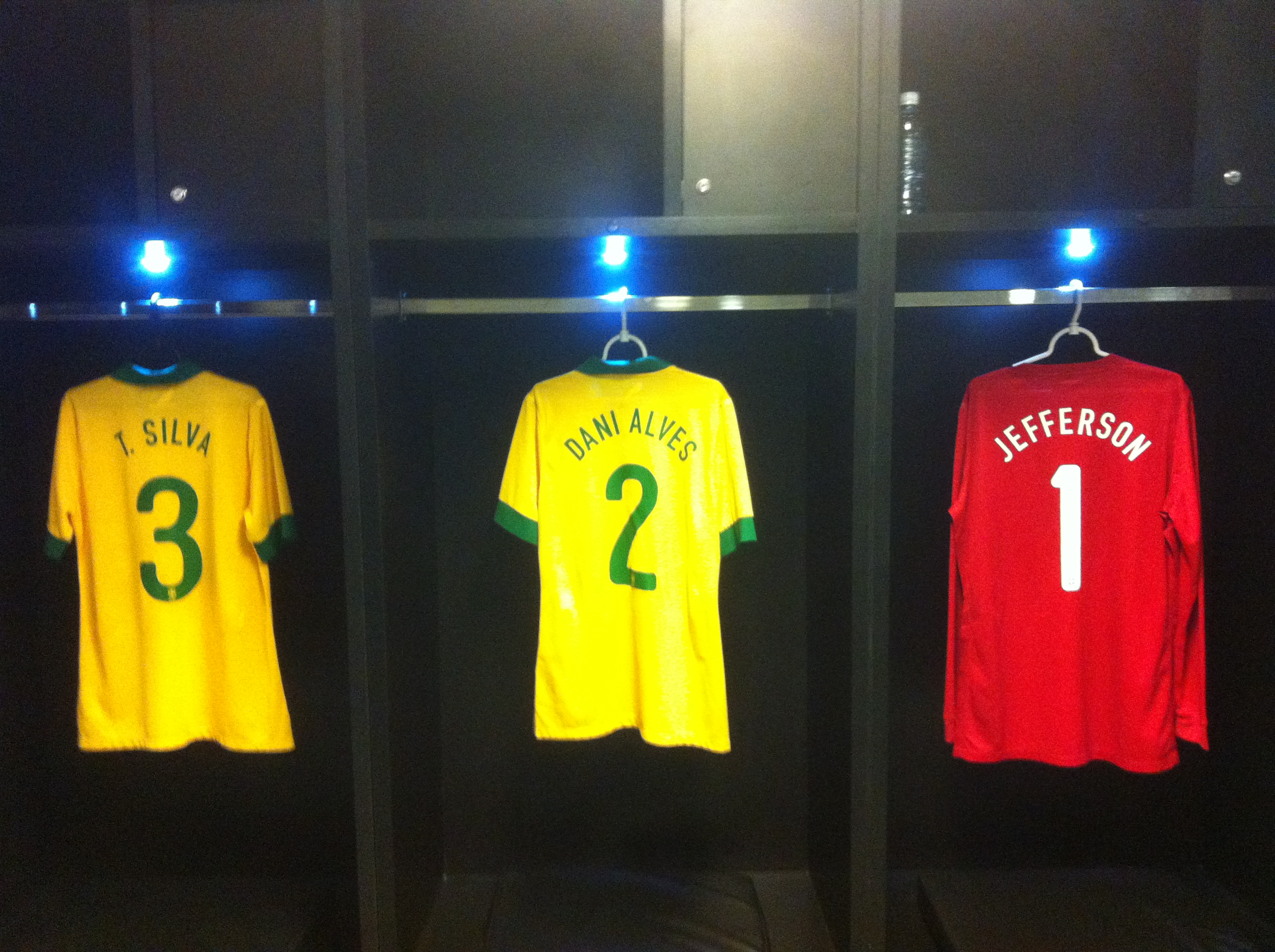 El vestuario con los sitios reservados para cada jugador de la selección.